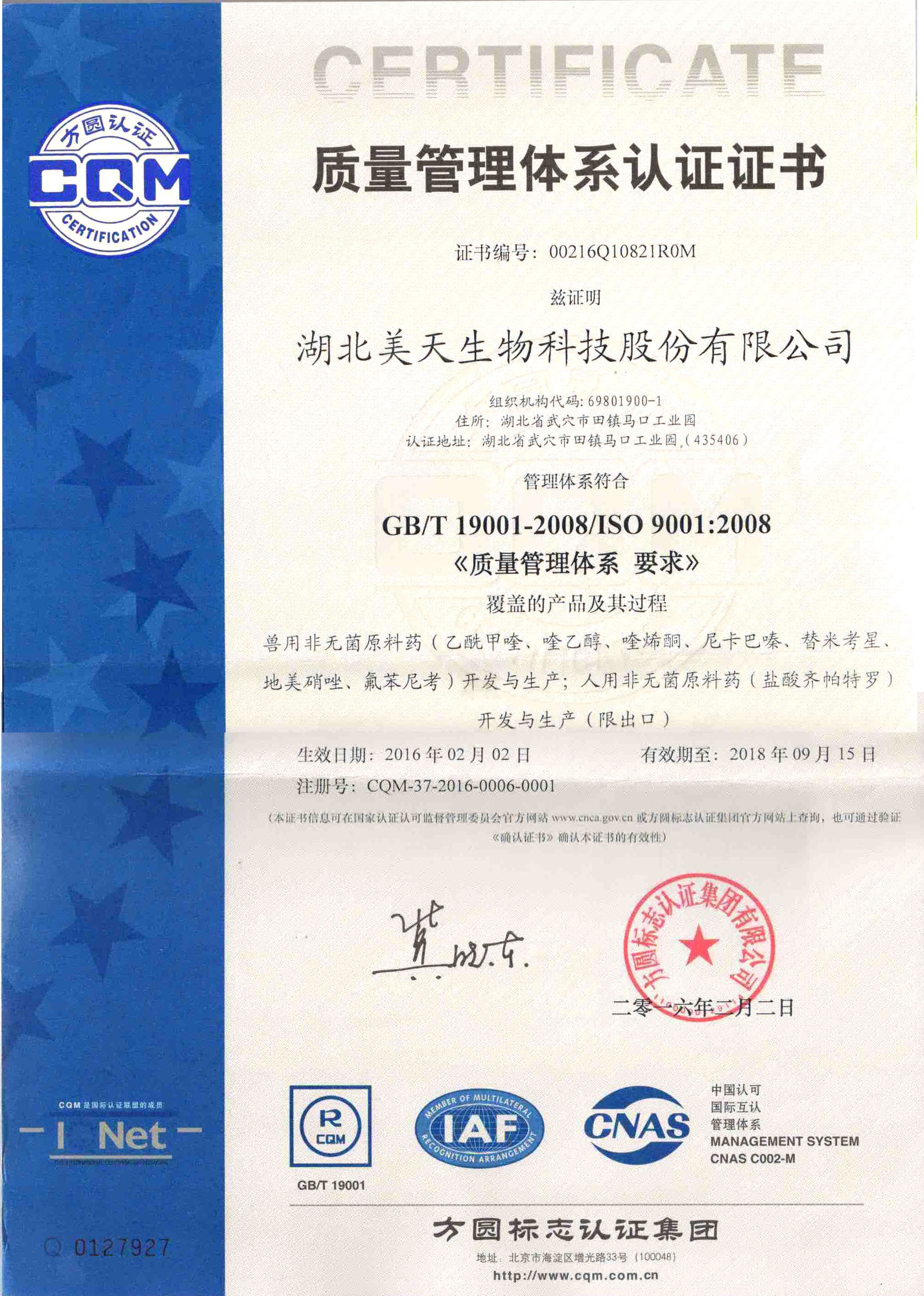 2016年2月2日,九游体育·九游网站官网成功获得质量管理体系认证证书(GB/T 19001-2008/ISO 9001:2008)。